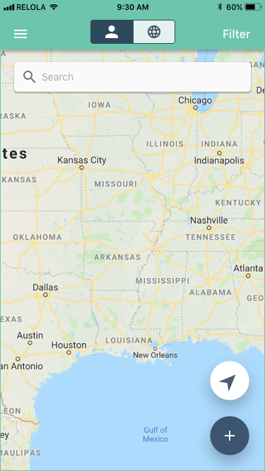 In order to make the map less overwhelming to Relola’s users and to encourage them in participating by adding new pins and insights to the map, I created a tab that showed users’ personal activity in focus and all Relola’s users’ activities in whole.